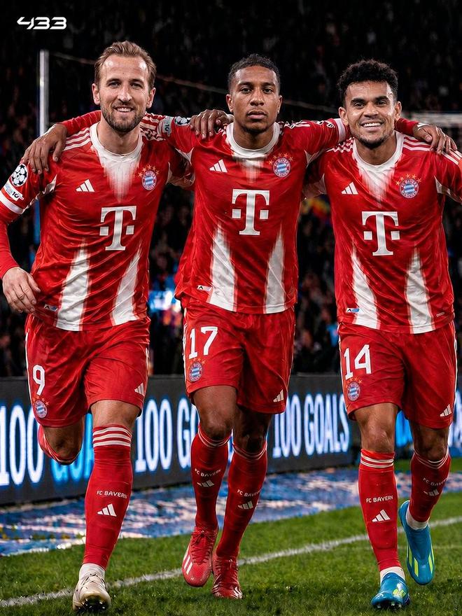 拜仁三叉戟本赛季已进100球:凯恩54球,迪亚斯26球,奥利塞20球