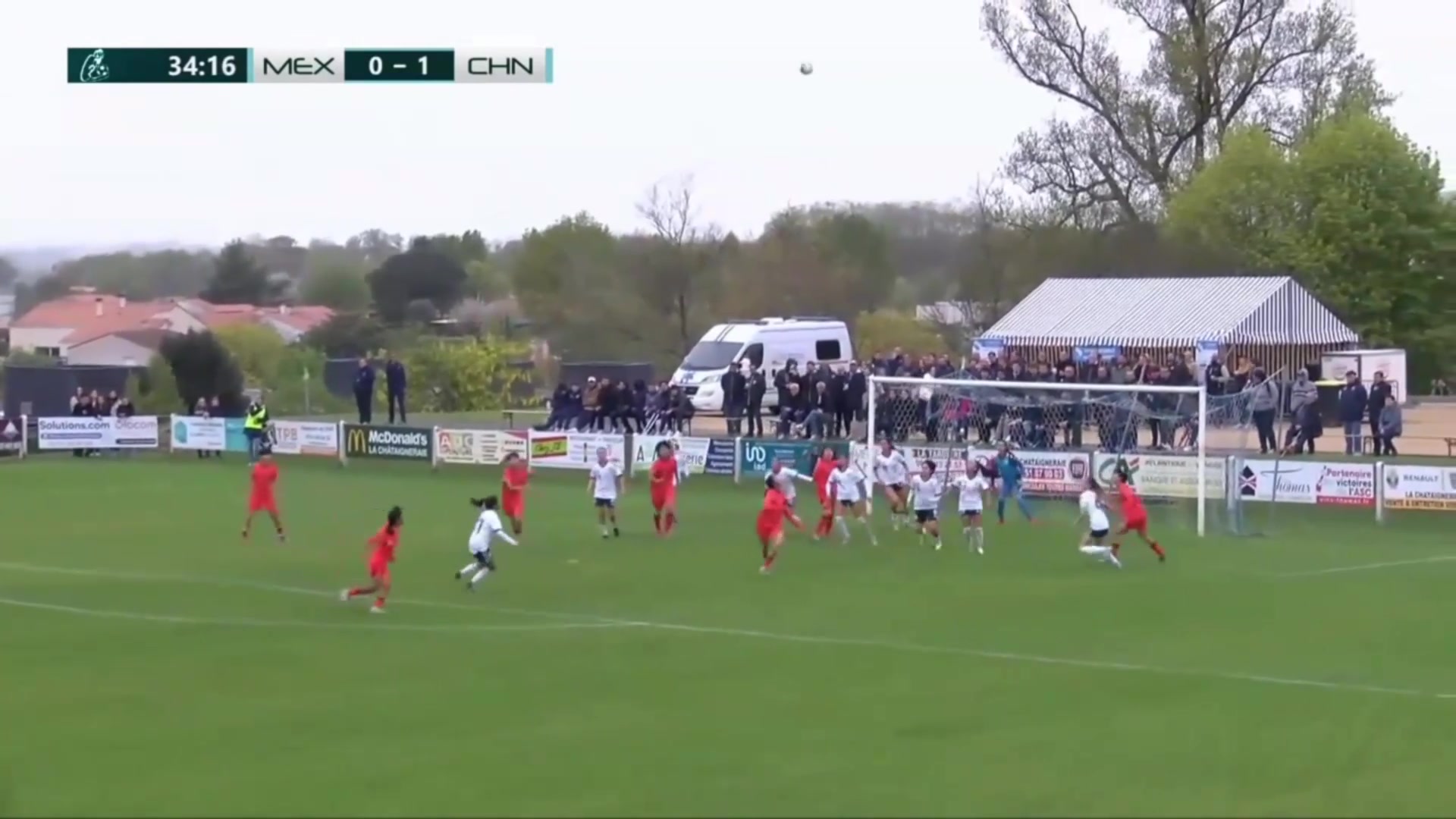 周瑾彤任意球直挂死角中国女足U16 1-0领先法国女足U16